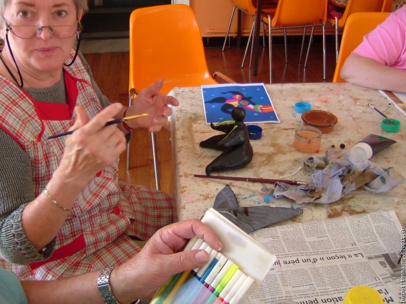 L'avant dernière séance et vous étiez nombreux à franchir la porte du Club ! On sent une ambiance de fin d'année et chacun veut, en vitesse, terminer sa réalisation ou en commencer une autre. Es-ce que j'arriverai à terminer lundi prochain. La terre sera-t-elle bien sèche, que dois-je peaufiner sur ma toile ?
