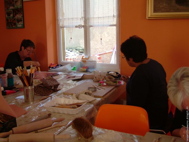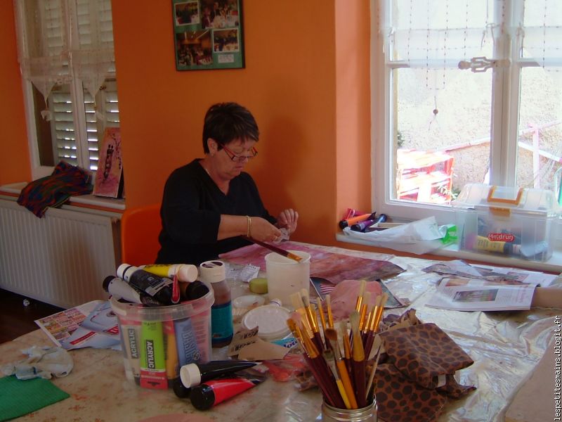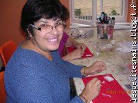 Le groupe était assez euphorique ! Entre celles qui enfilaient des perles ! et celles qui découpaient des serviettes, des fous rires ont fusé !