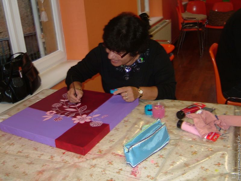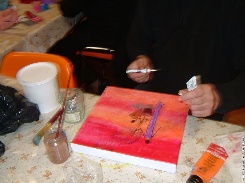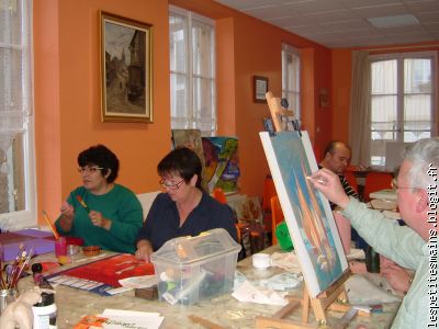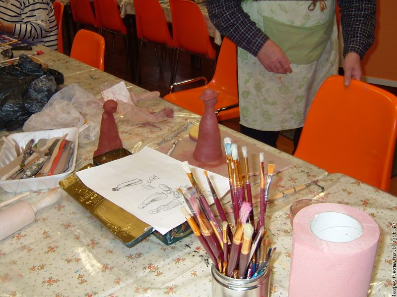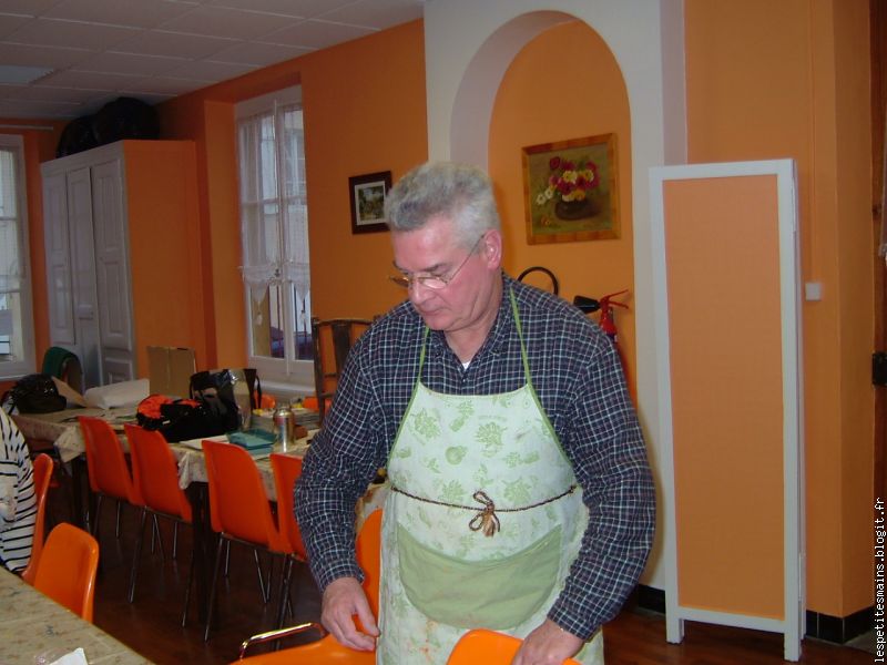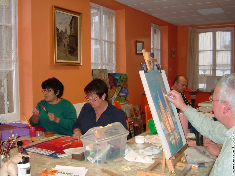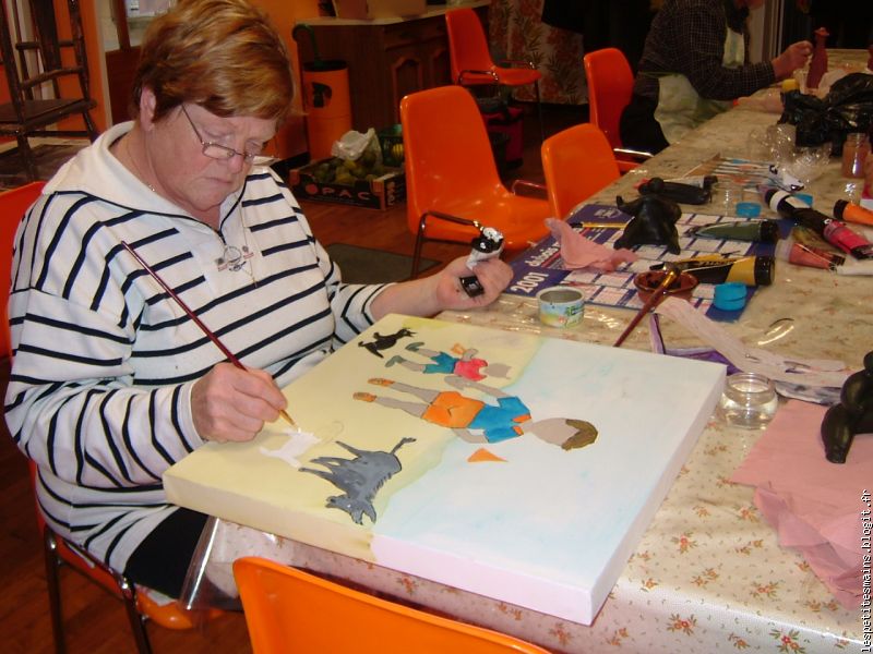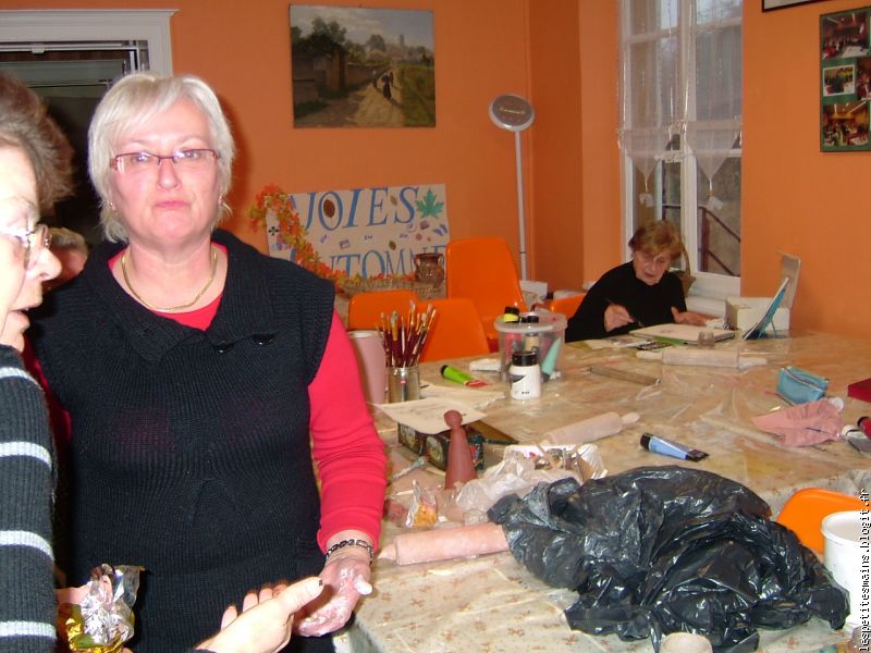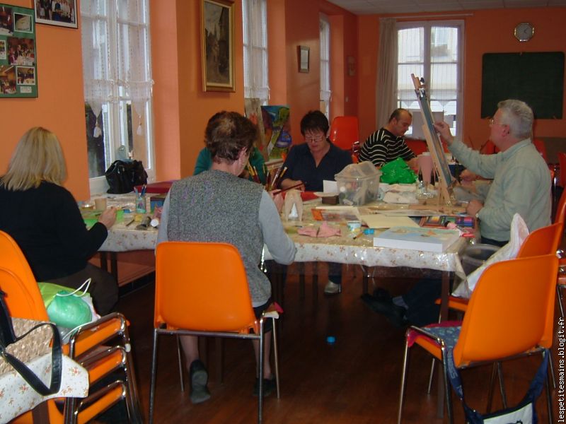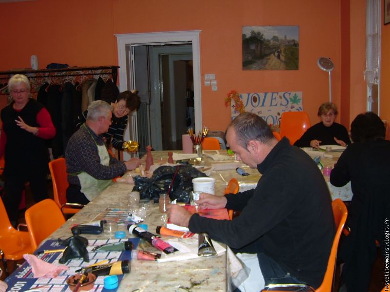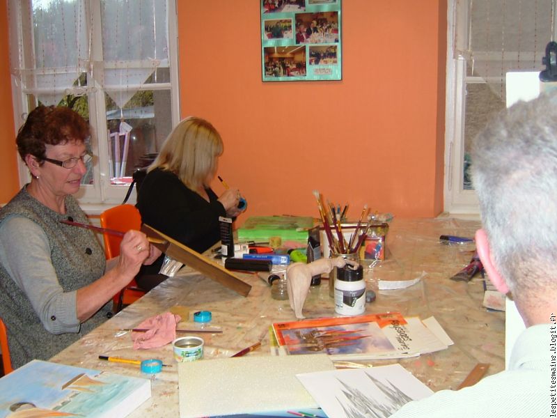 Encore un lundi ! tous ont bien travaillé ... entre les créations, les mises en peinture des sujets, de la peinture sur toile, une bonne ambiance bien au chaud alors que dehors il fait gris, il pleut ... que c'est bon d'être ensemble.