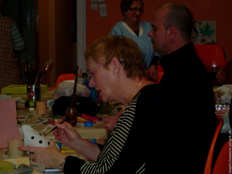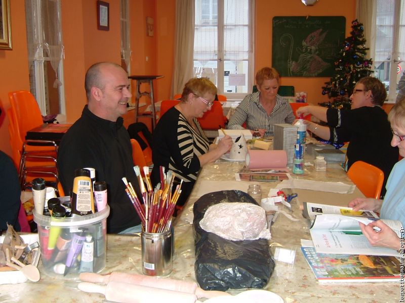 Chacun se lance encore vite dans une réalisation avant les fêtes et les idées fusent pour l'avenir de notre club. Aujourd'hui, c'était poterie mais en fin de compte, chacun a terminé les créations entreprises, ce qui fait qu'il y avait un mélange très stimulant.