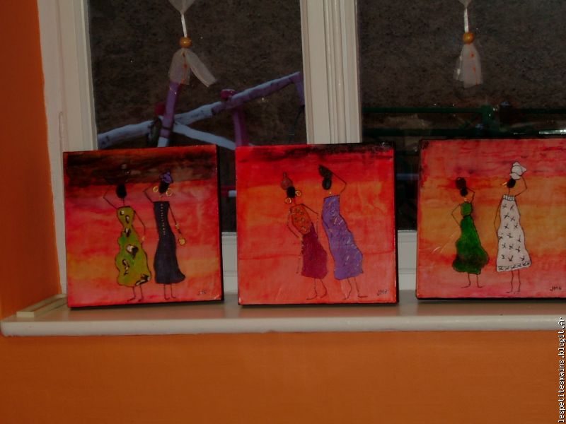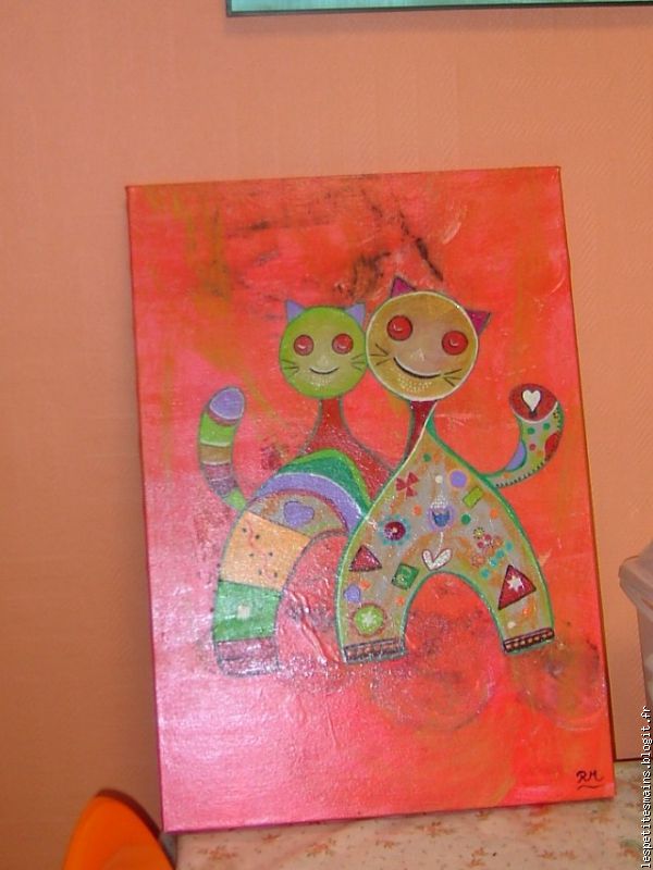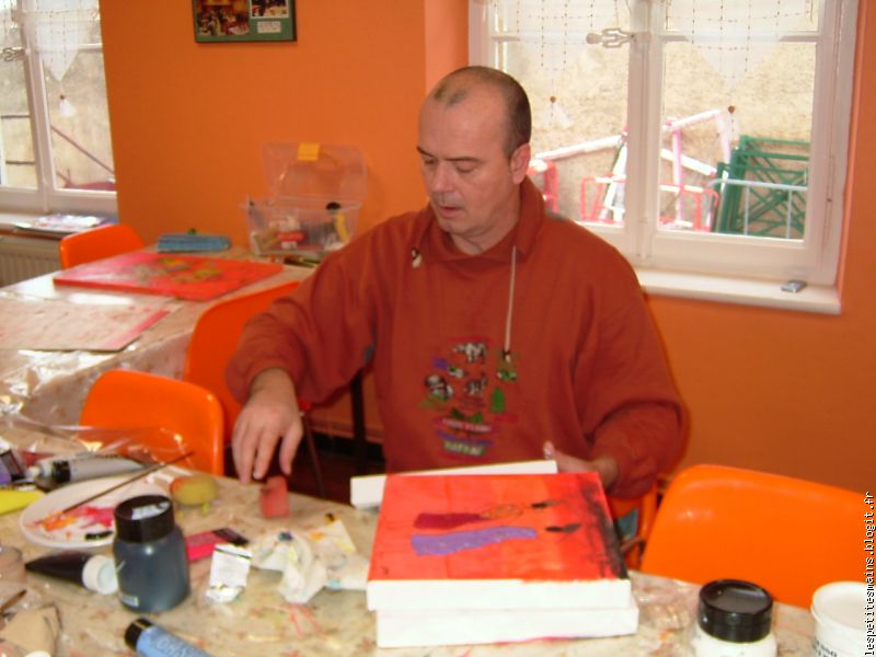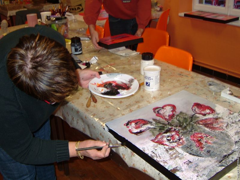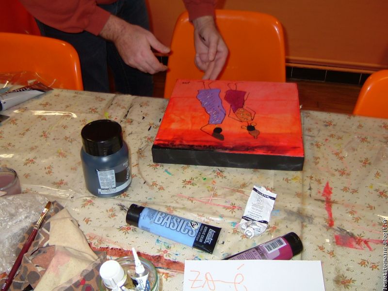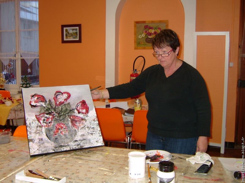 Louis s'est lancé dans la confection d'un Père Noël, adorable. Agnès est toute fière de sa toile .... et il y a de quoi. Margot a terminé sa toile avec ses adorables petits chats. Eliane a terminé son beau bouquet de fleurs et Jean-Michel a terminé ses toiles pour ses amies (veinardes !!).