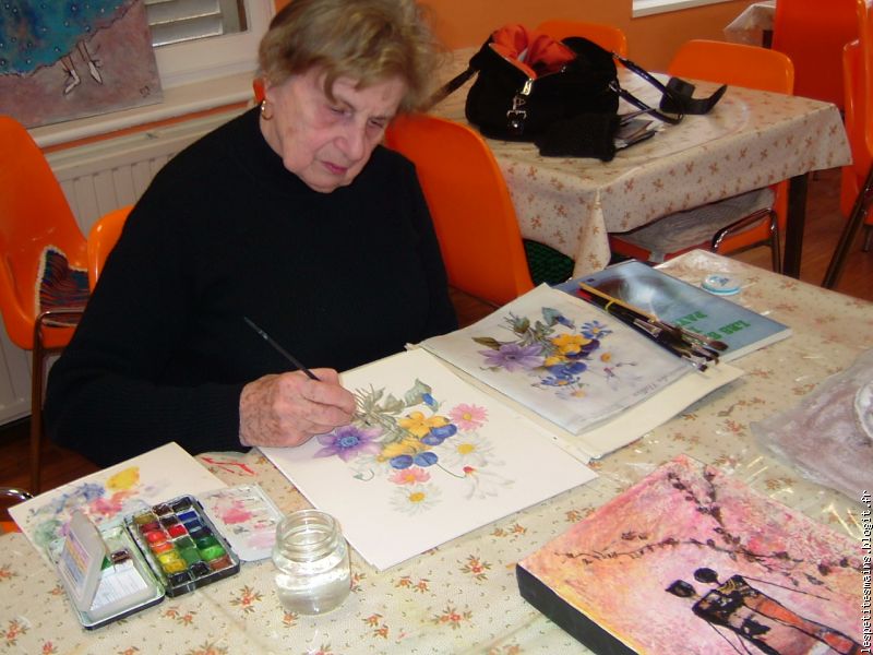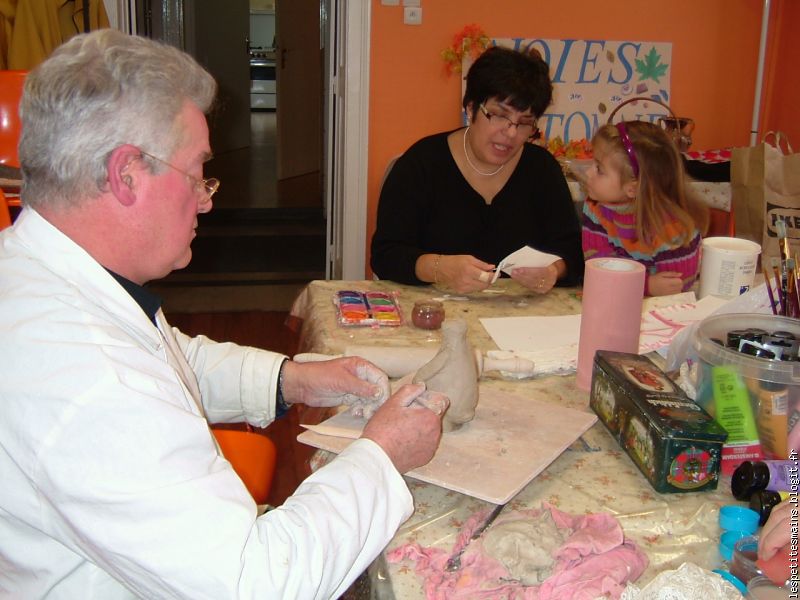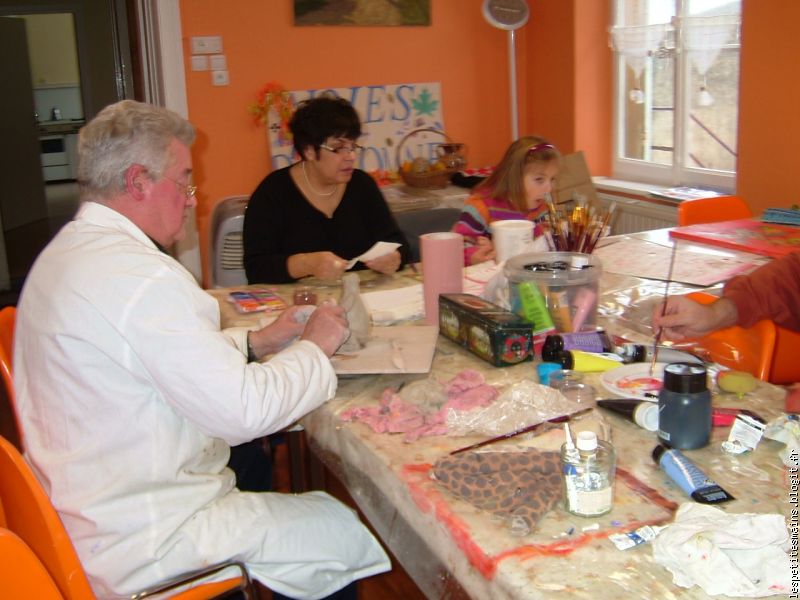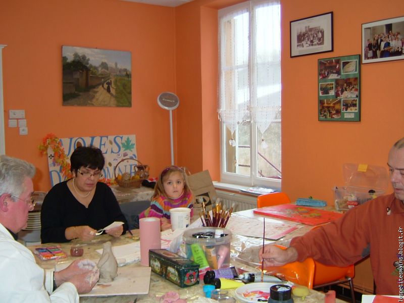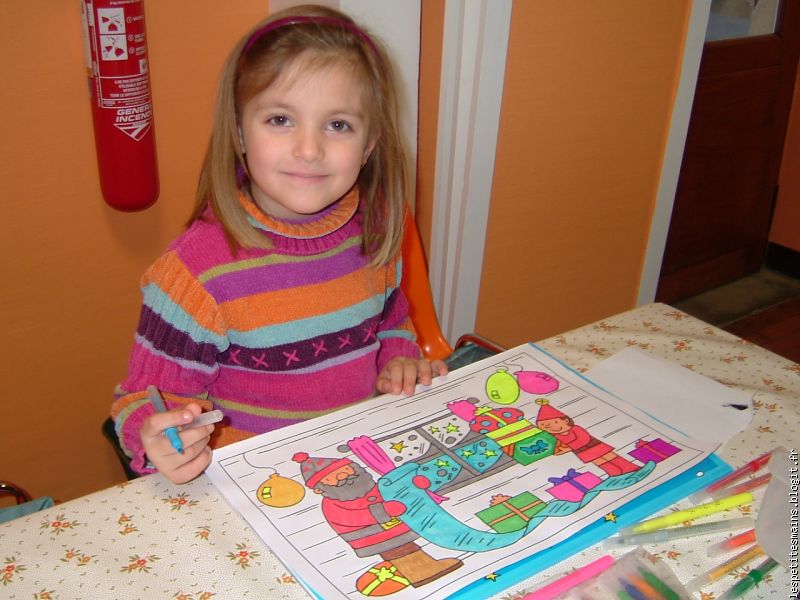 Nous avions également deux toutes petites mains en la personne de Zoé, petite-fille de Marguerite, adorable, qui a déjà les dons de sa grand-mère ! Entre dessins, coloriage, carte, un vrai petit ange.
