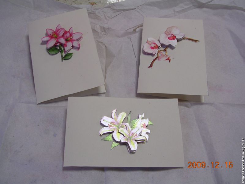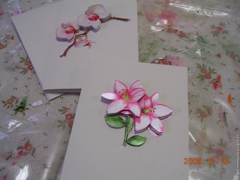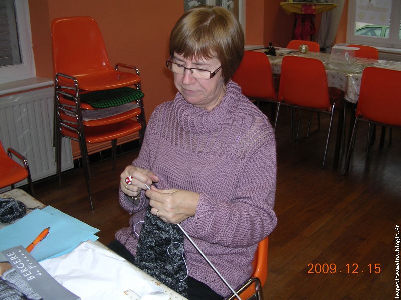 Les cartes de fêtes sont à l'honneur et même déjà des cartes pour le printemps (Inès ne veut plus de panoramas de froid ...). Marie-France, sans relâche, pique son aiguille pour avancer sa broderie et Evelyne cliquette ses aiguilles à tricoter, démèle sa laine (!!), mais l'ouvrage se réalise petit à petit.