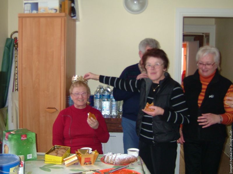 Vous vous doutiez bien que nous n'avons pas oublié la galette des rois (merci Marguerite), elle était succulente, fait maison ... et notre reine du lundi pour toute l'année 2O1O est .... Jacqueline (Sa Majesté).