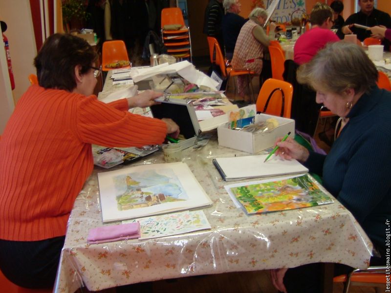 Après cet intermède, les choses sérieuses ont repris et chacun s'est lancé dans la réalisation d'un tableau. On voit qu'il y a un an de travail derrière nous car on n'hésite pas à venir avec des toiles de plus en plus grandes (n'es-ce pas Brigitte !!).