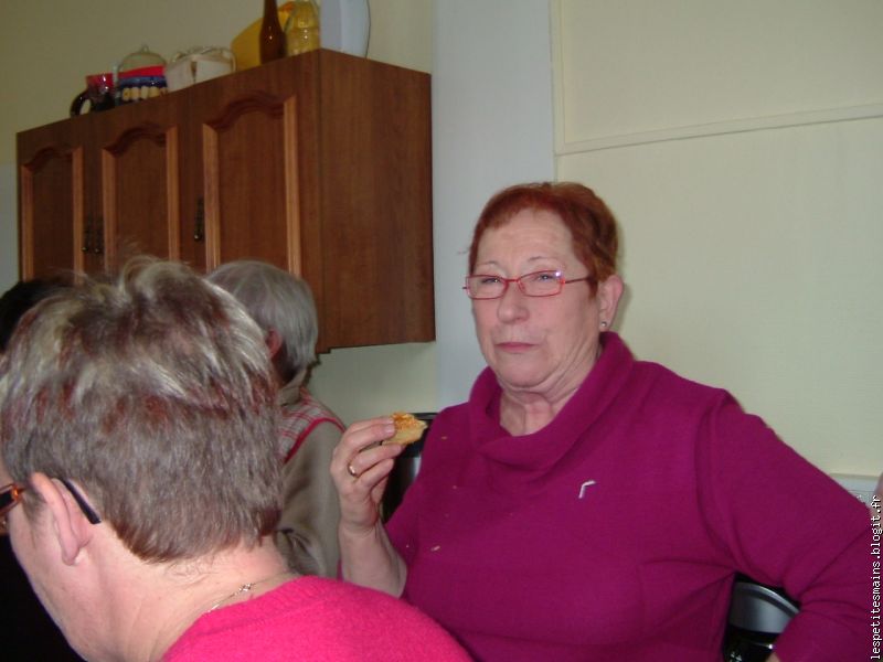 Agnès a commencé à tricoter des mitaines, dépêches toi, le froid reviendra ! et Evelyne a promis de mettre son beau pull en début d'année (elle s'accroche, maille après maille).