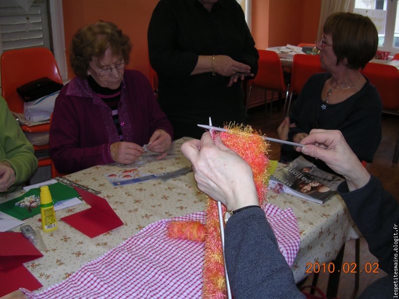 Un méli-mélo de créations, entre les cartes, les bottes (merci Annie), le tricot, crochet, canevas, peinture, poteries, il y en avait sur la table !!
