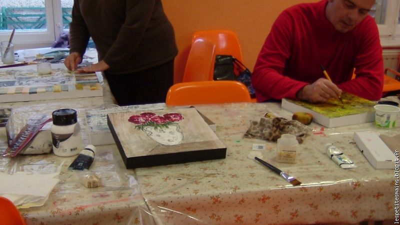 Nicole, qui dit toujours qu'elle ne sait rien faire, a réalisé ... deux toiles, hé oui ! et elles sont belles.