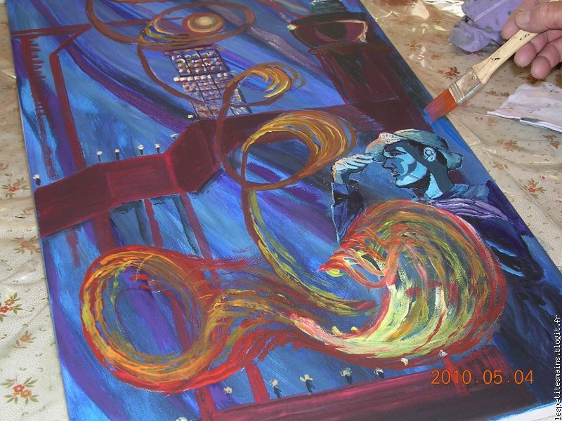 Louis a peaufiné sa dernière toile et il était super concentré.