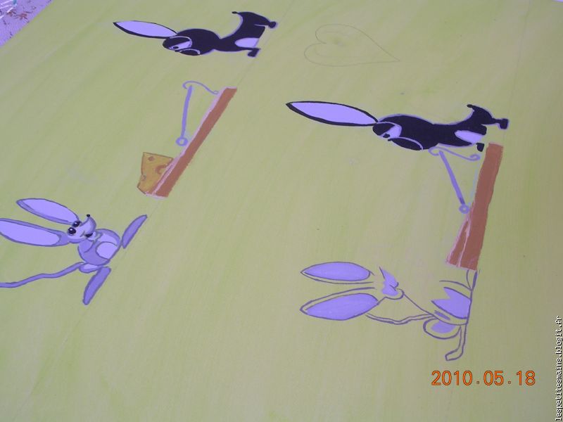 Adeline, tes petites souries sont à croquer. Il, elle ? va avoir de la chance d'avoir cette belle toile dans sa chambre.