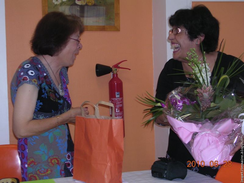 . Agnès BOSCHIAN, notre animatrice de loisirs créatifs, qui patiemment et avec gentillesse, nous fait découvrir tout ce qui est possible de faire avec nos "petites mains".
