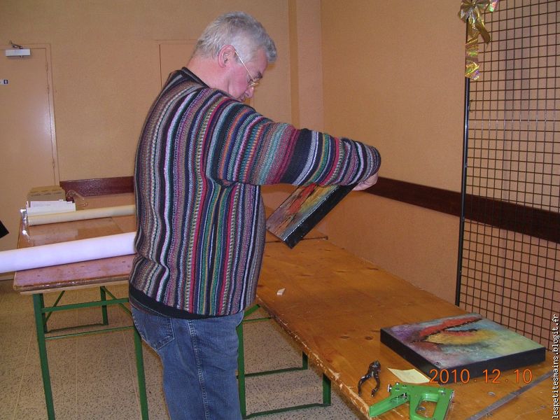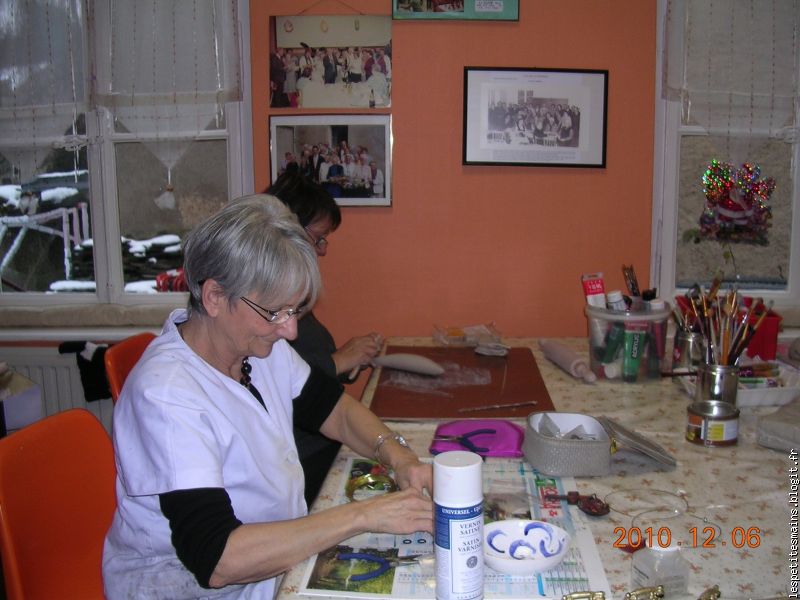 Il faut quand même préciser que cela n'a empêché personne de travailler, disons terminer les dernières réalisations. Nous avons hâte d'être samedi, qu'il pleuve, neige ... nous allons faire une salle "merveilleuse". Tous sont partants et le planning est fait. Nous allons, demain, revoir tout cela.