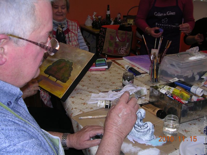 Marguerite, silencieuse, studieuse, le nez sur son tableau, nous a encore une fois fait une peinture merveilleuse (sûr qu'elle trouvera preneur !).