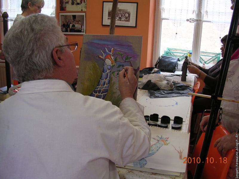 Marguerite a également terminé de vernir ses toiles et Louis s'est lancé dans une peinture "au long cou" !!.