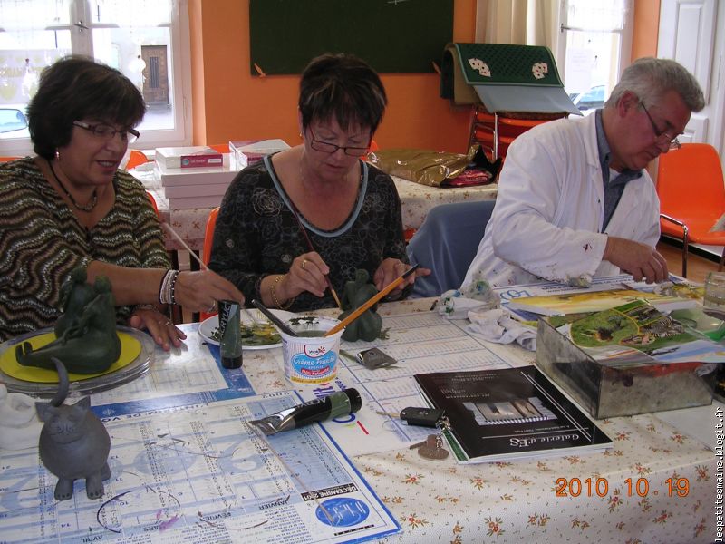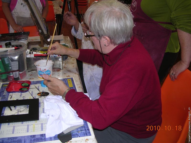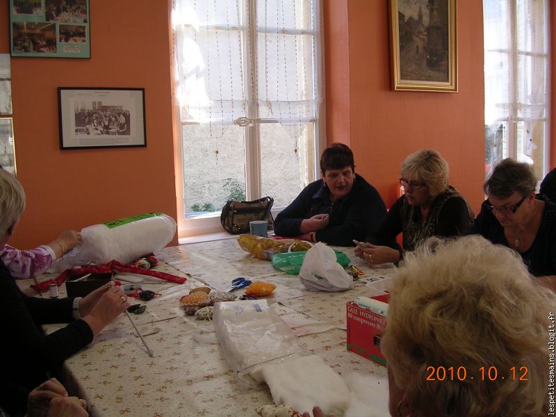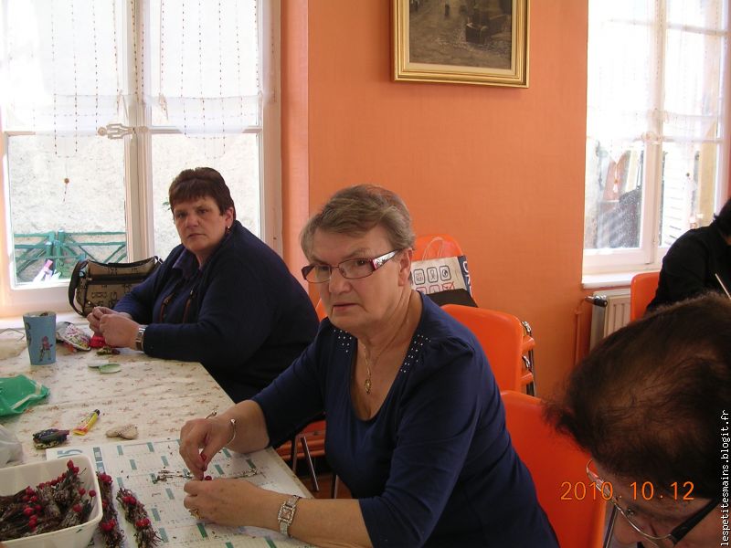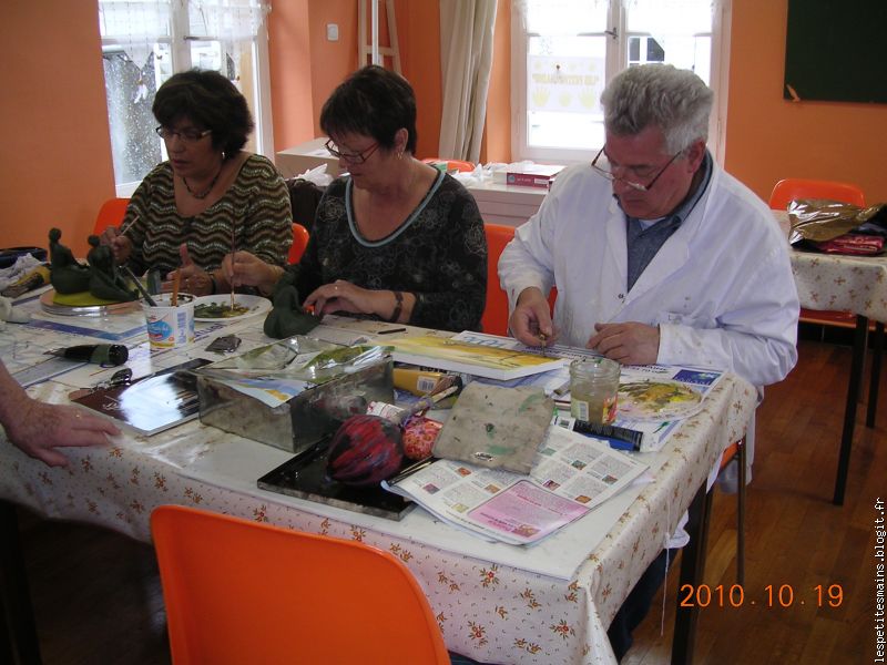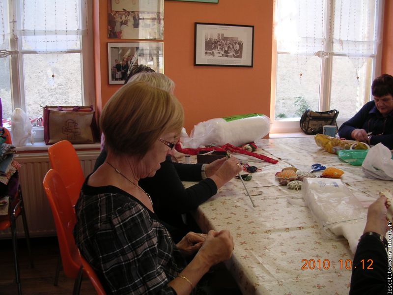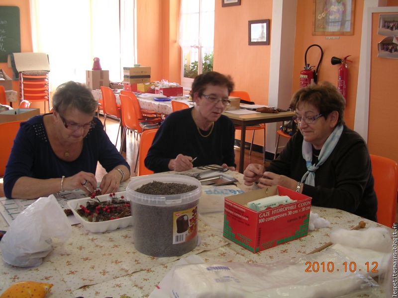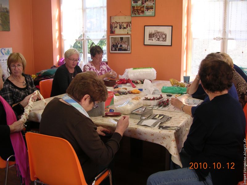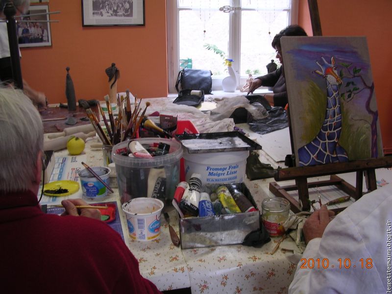 Marie-France nous manque, ton canevas a-t-il avancé ? Noëlle, tu as encore ton assiette à terminer ... Annie, arrêtes de faire la nounou et vient te détendre un peu au club !