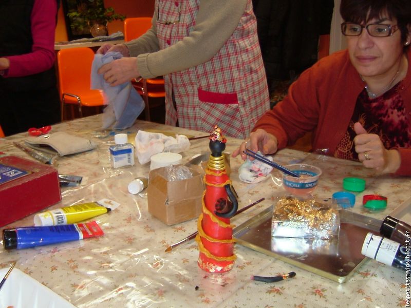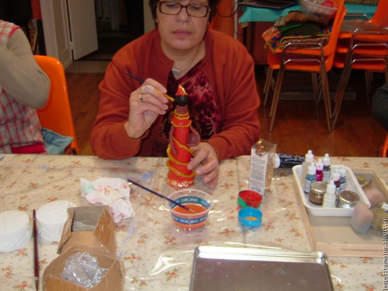 Après les voeux pour cette nouvelle année, chacun a repris la création laissée en attente ou en a commencé une autre. Les idées fusent ... tout cela dans une bonne humeur et encore une ambiance de fêtes.