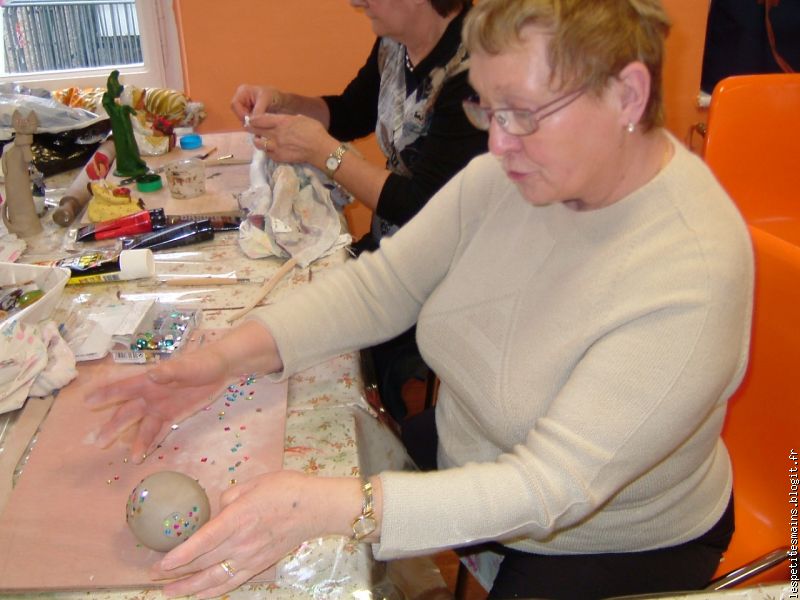 Sabine et Michèle ont réalisé des oiseaux, des "moineaux", adorables. Ils n'attendent plus que leurs couleurs.