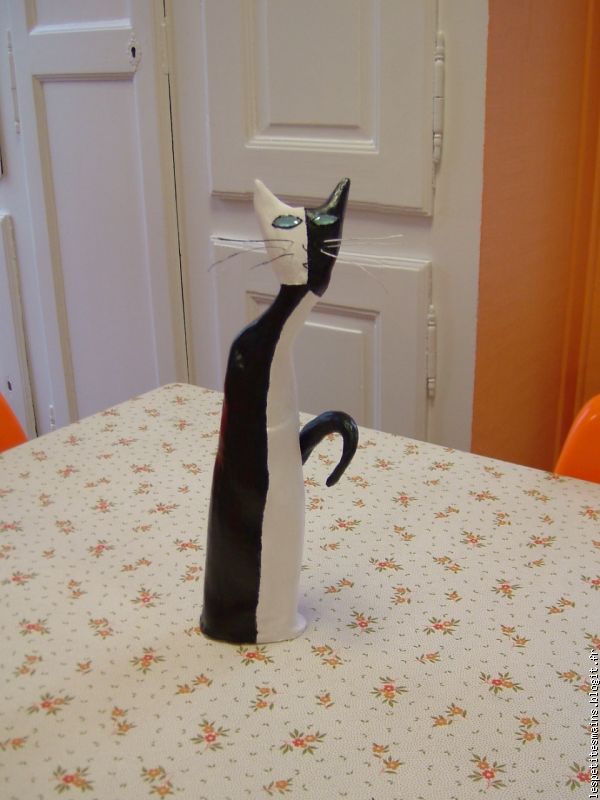 Louis fait un grand chat, compagnon romantique de la petite chatte qu'il a déjà confectionnée. Toujours aussi minitieux, ce sera un superbe couple.